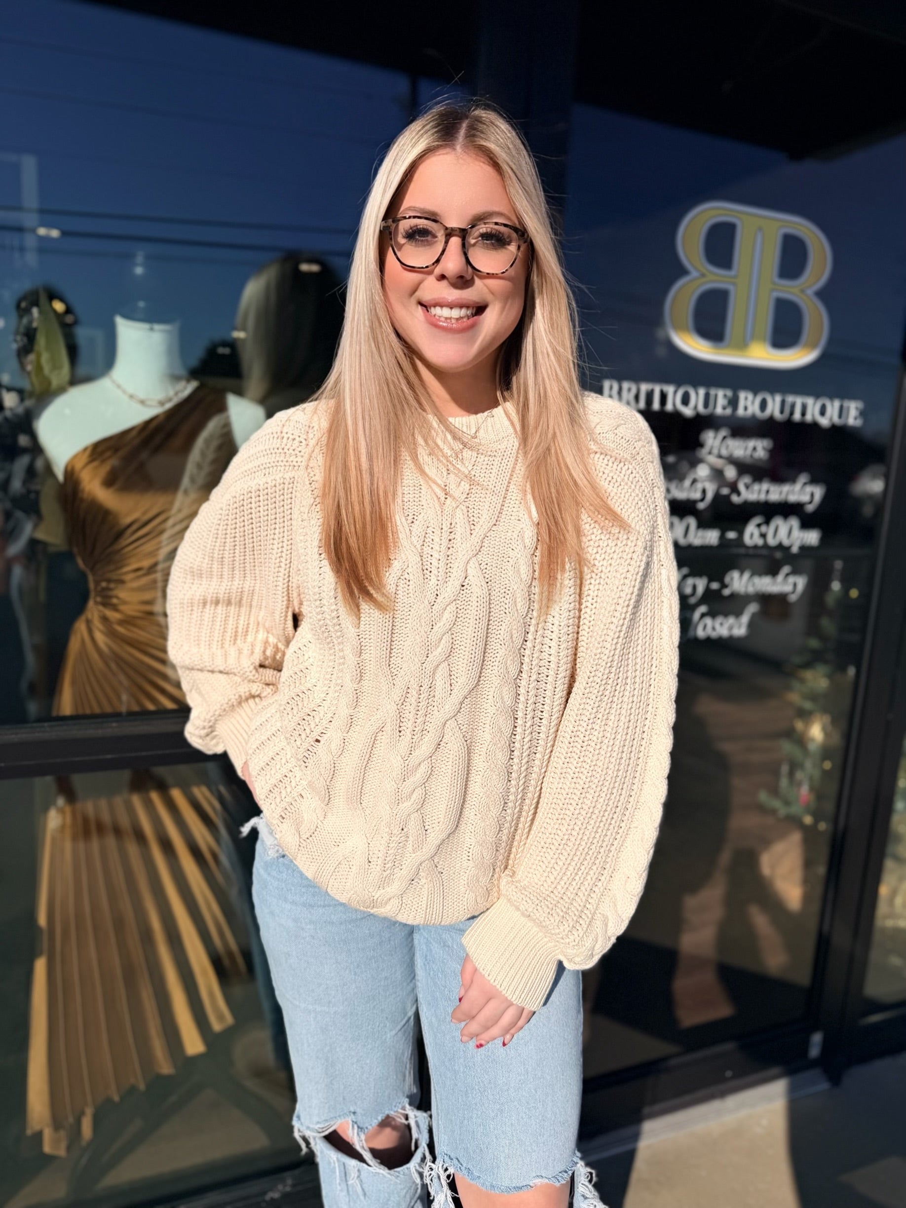 A new take on a forever classic, this staple sweater is featured in a chunky knit fabrication with timeless cable detailing throughout for an added special touch.