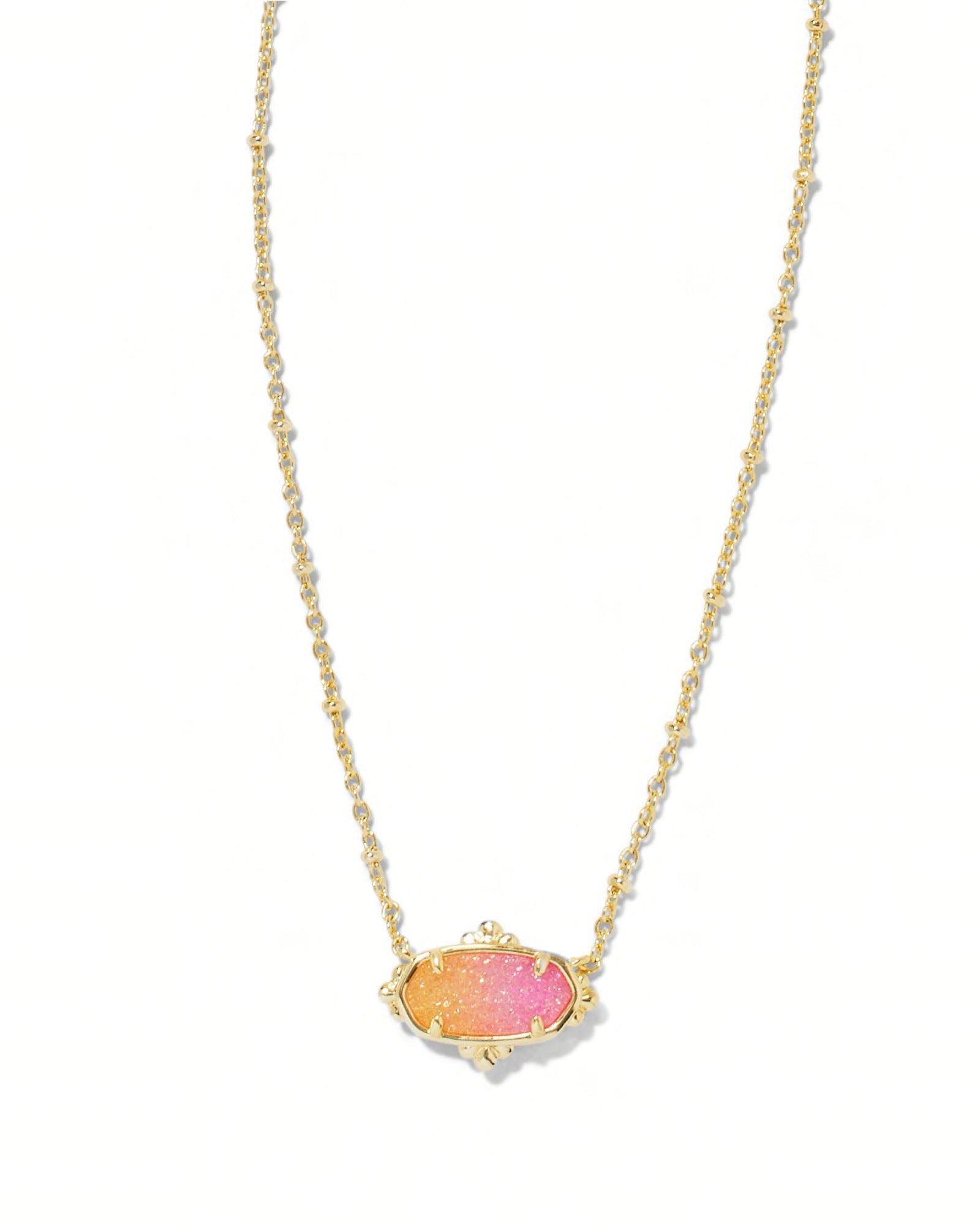 KENDRA SCOTT Collar con colgante corto con marco de pétalos dorados Elisa en color Sunrise Ombre Drusy